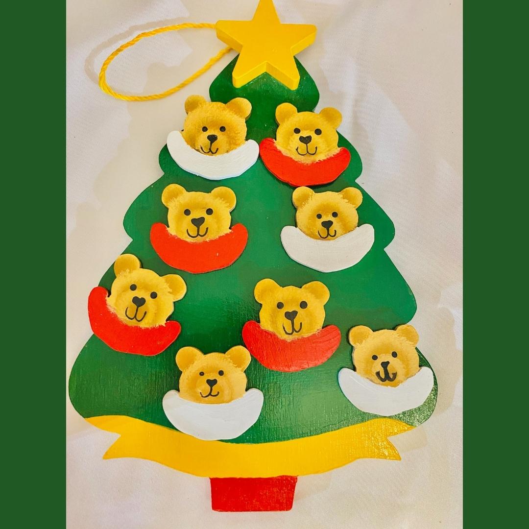 Personalized Ornament 8 Bear Faces on a Christmas Tree 7.5" x 6"