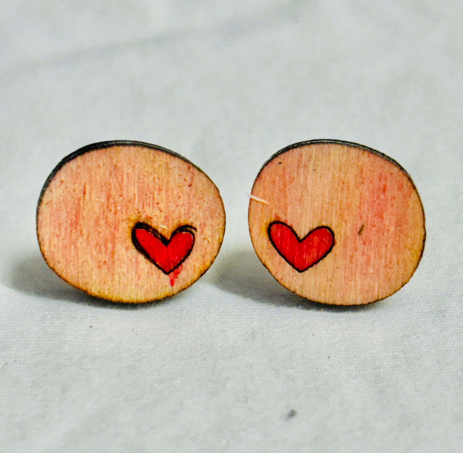 Add a pop of color to your outfit with our A Touch of Love Stud Earring. The vivid red heart contrasts beautifully with the faded red watercolor background. Made with premium baltic birch wood, these earrings are hypoallergenic and nickel-free for a comfortable wear. Love yourself and your style with these unique studs!