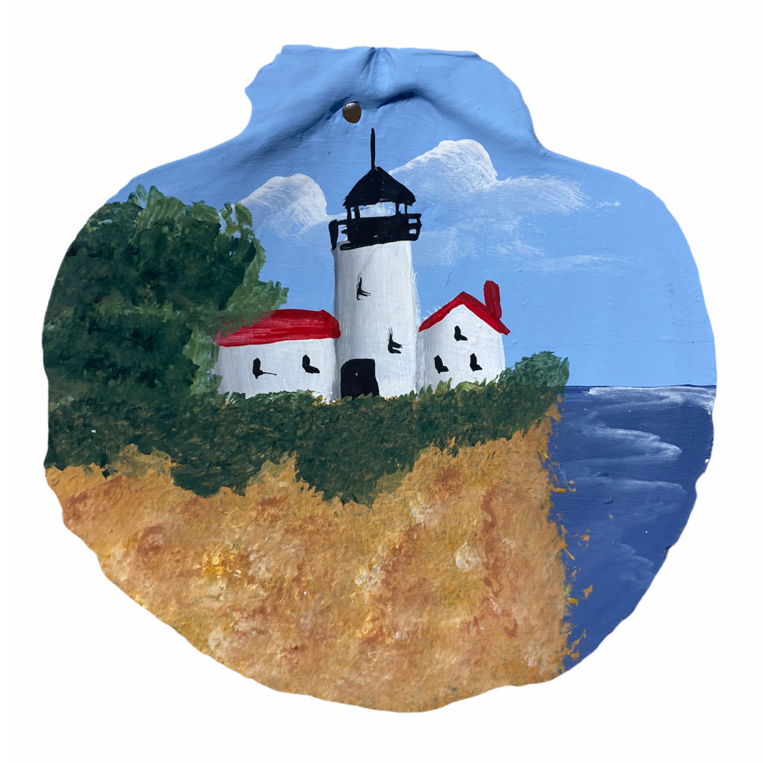Bass Harbor Lighthouse Hand Painted on a Scallop Shell