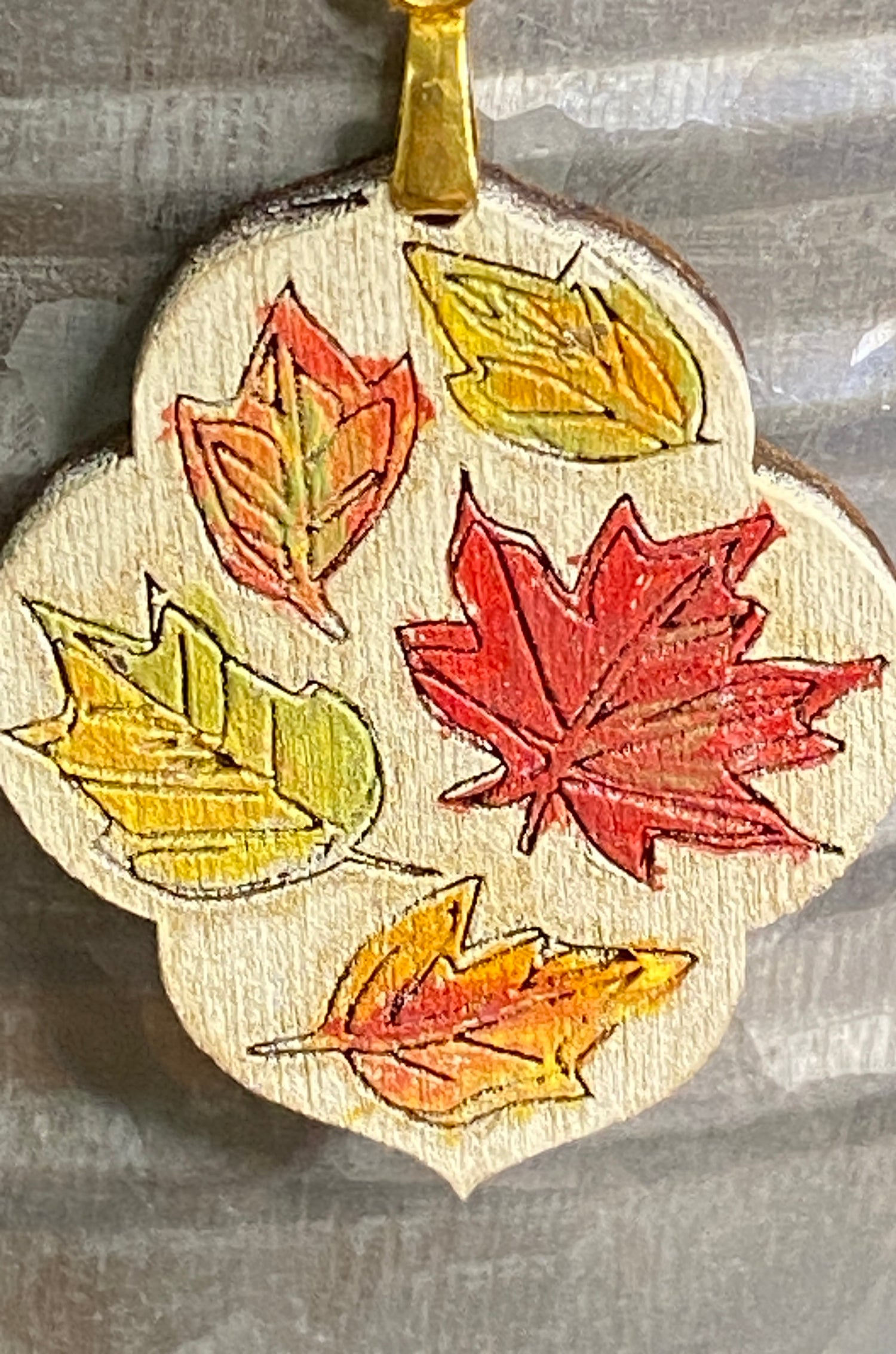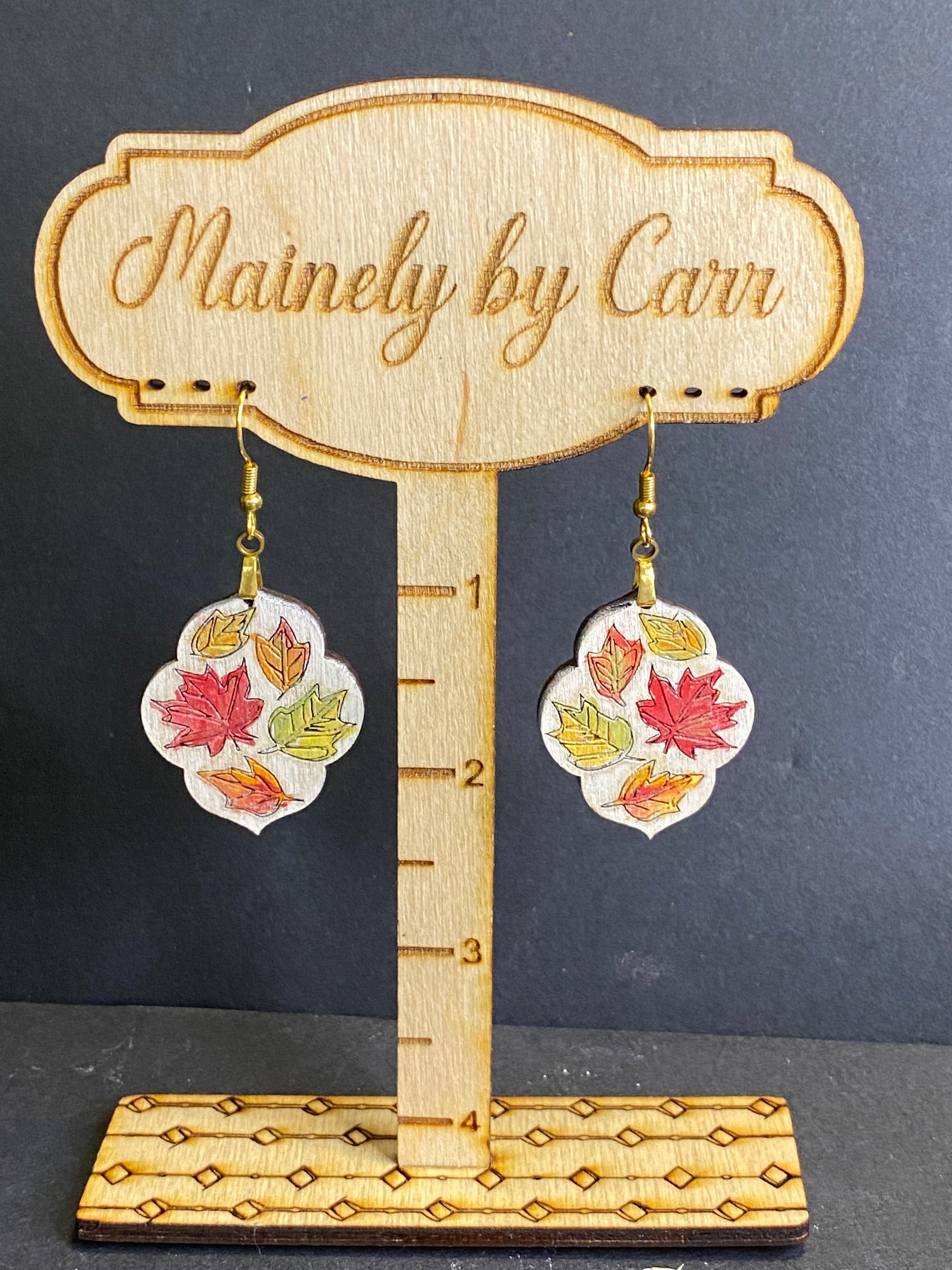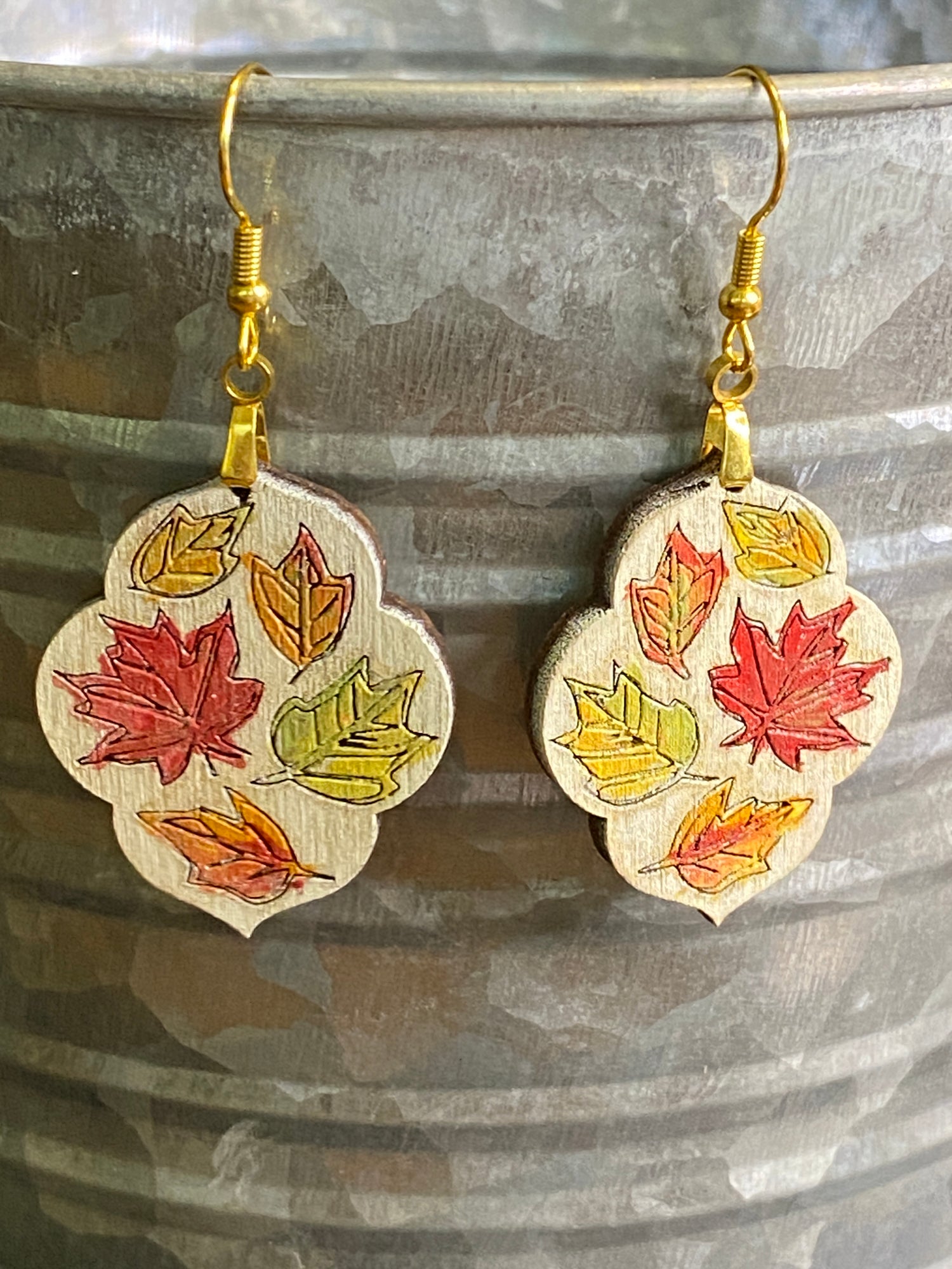 Blowing Leaves - Hand Painted Fall Leaves on Wooden Dangle Earring