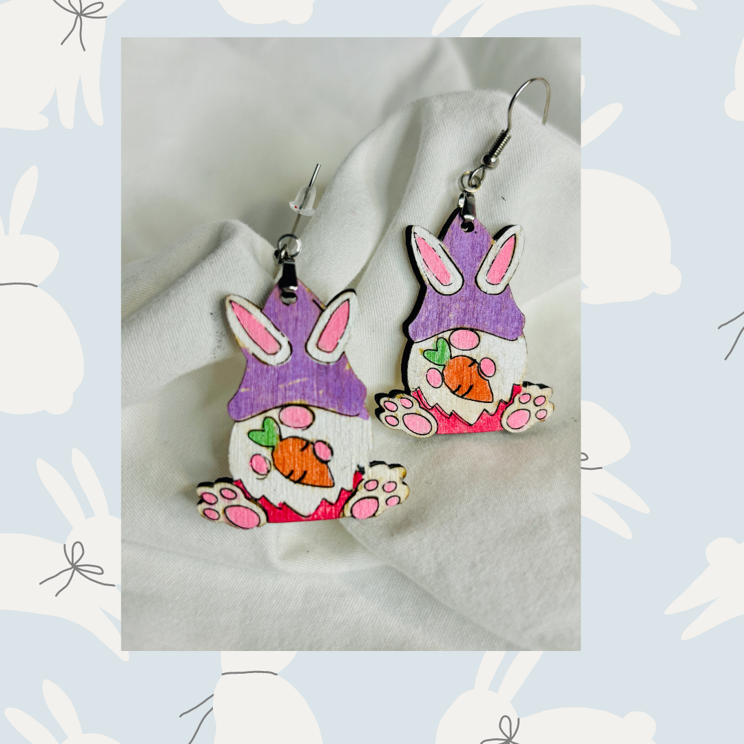 Add a playful touch to any outfit with these Bunny Gnome Dangle Earrings. Made of premium baltic birch wood and hypoallergenic earwires, they are perfect for anyone with sensitive ears. These quirky earrings feature a charming bunny gnome design that is sure to add a unique and fun element to your style. Hop on over and get yours today!