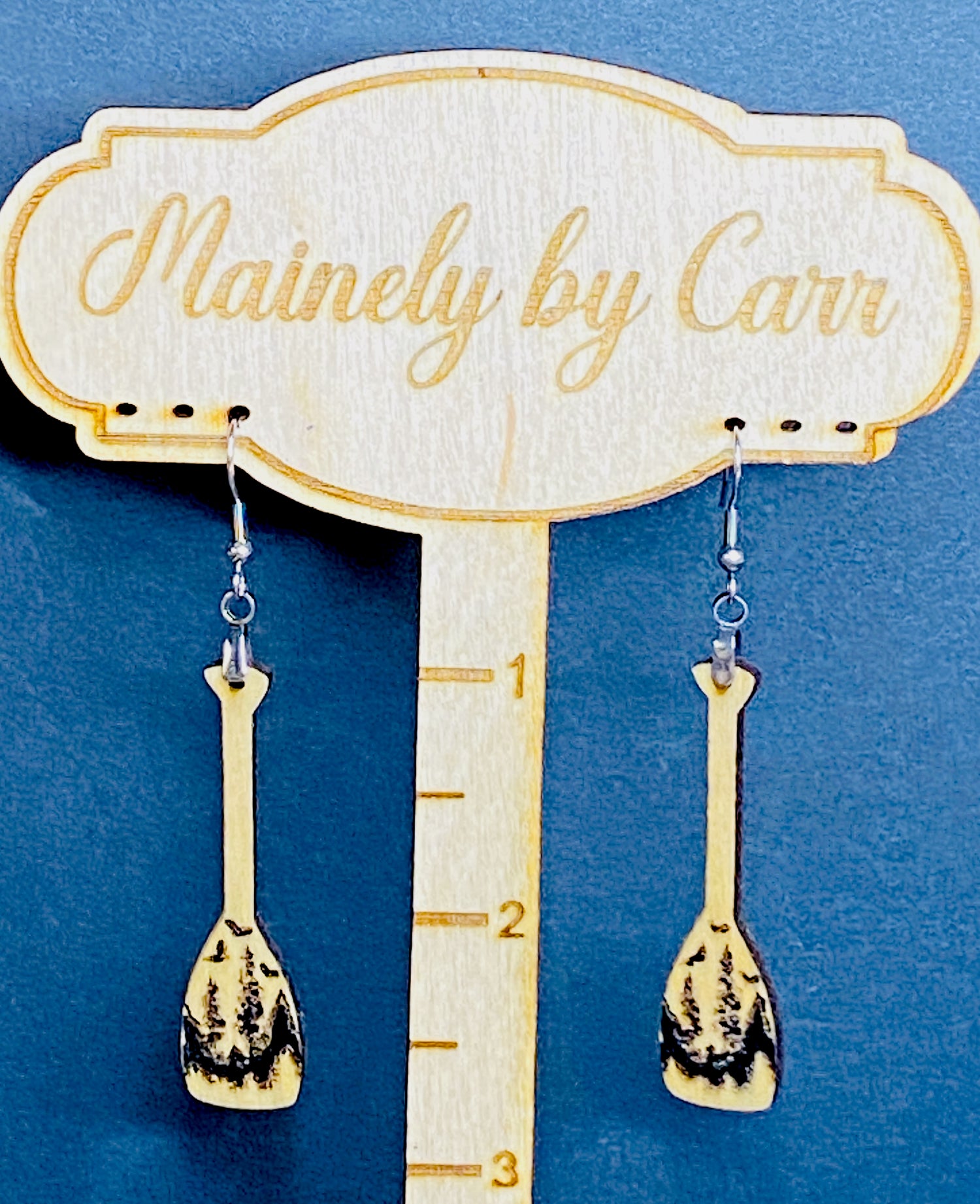 Ding, ding, ding! Get ready for an adventure with our Canoe Paddle Wooden Earrings with Forest Design! These earrings go straight for a boat-filled good time, featuring a stunning canoe paddle with a forest design and a light stain and black finish. Wanna go canoeing? Put 'em on and get ready to paddle!