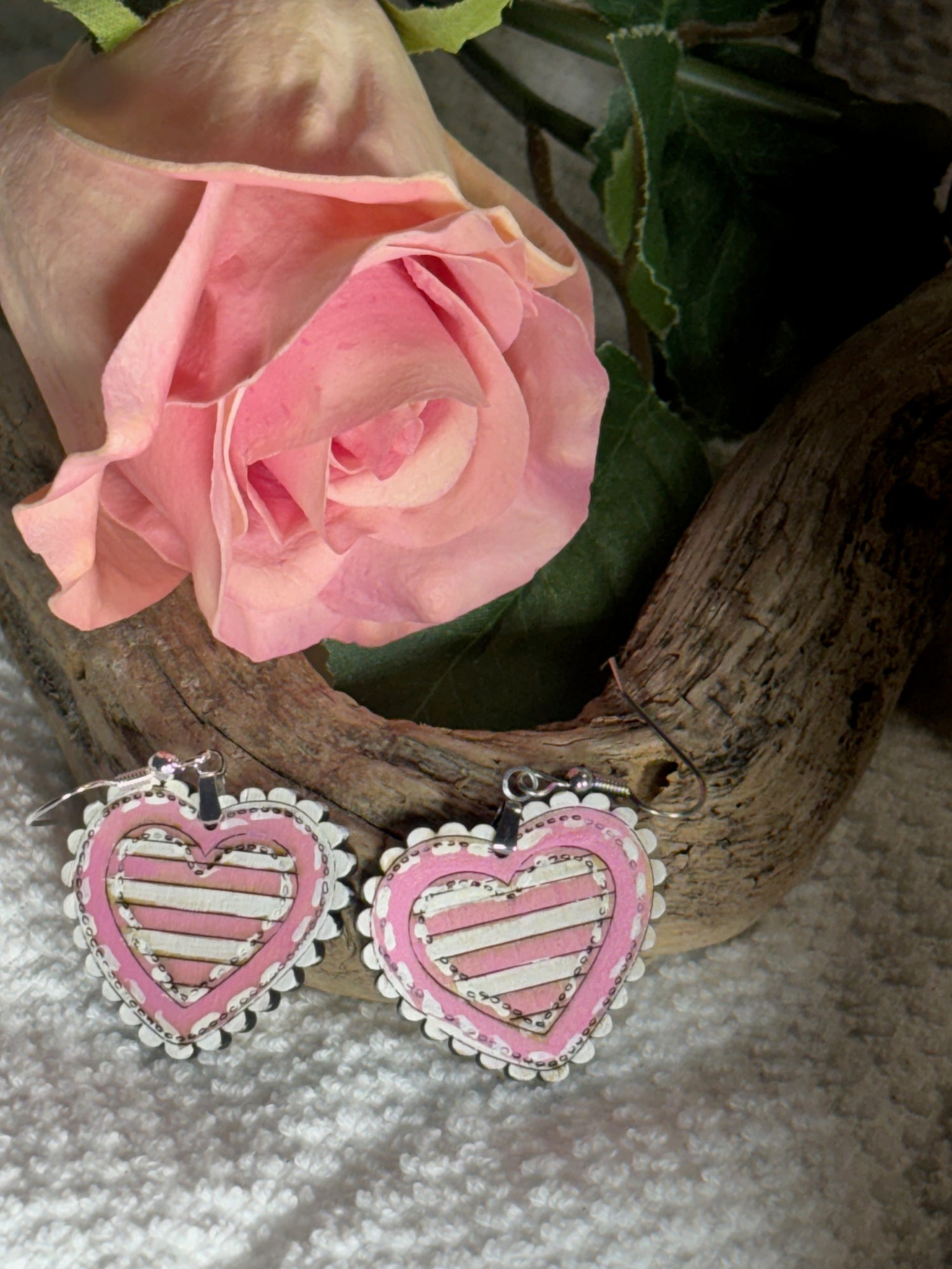Spice up your style with our Delicate Pink Heart Earrings. These dainty earrings feature a heart shape design with a delicate pink and white color palette, adding a touch of sweetness to any look. Perfect for the romantic at heart! (Only 2 exclamation points used, as instructed by tone guidelines.)