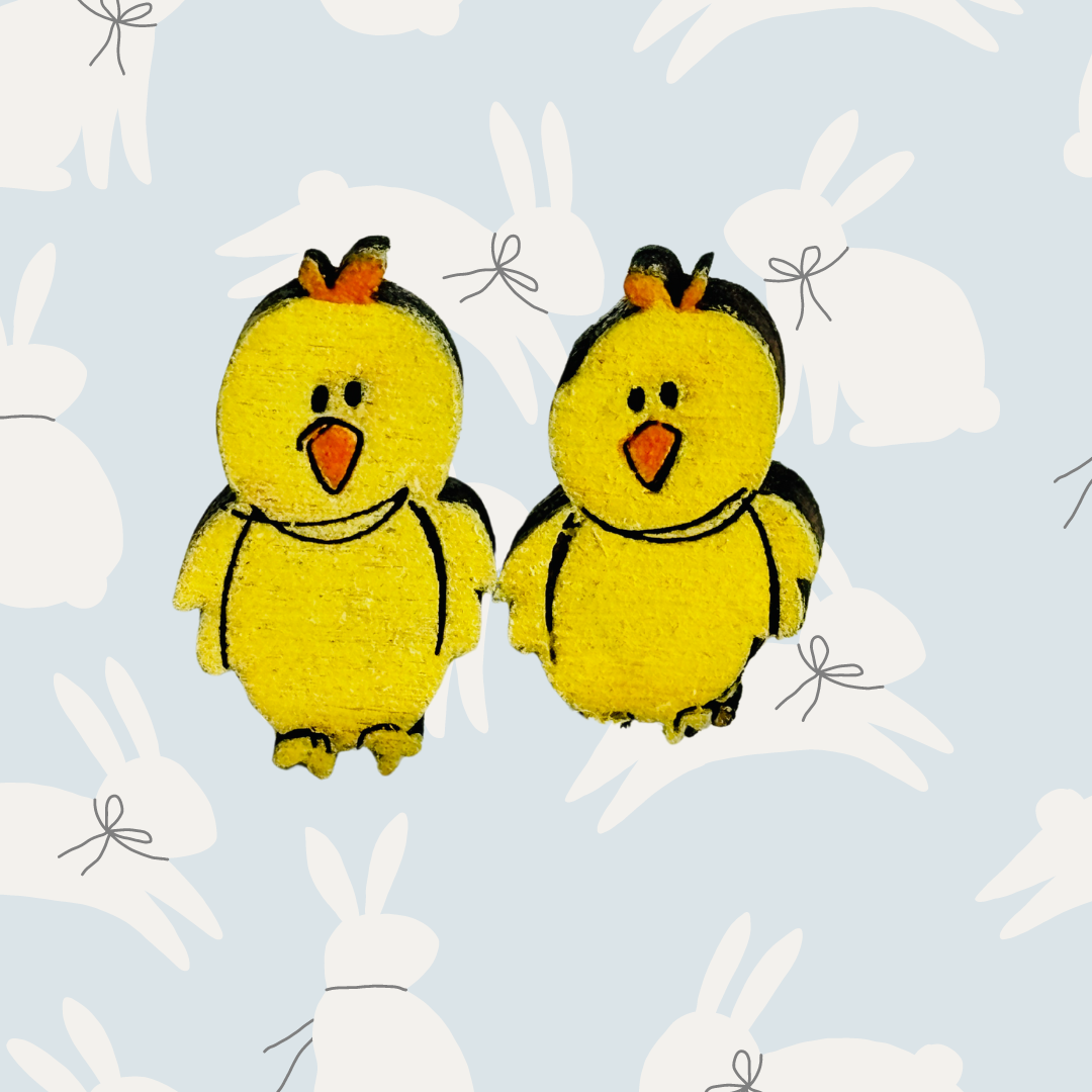 "Spring into style with our Easter Chick Studs! These premium baltic birch earrings feature adorable hand painted yellow chicks, perfect for adding a touch of whimsy to any outfit. Plus, our hypoallergenic posts ensure comfortable wear all day long. Hop to it and grab these quirky studs today!"
