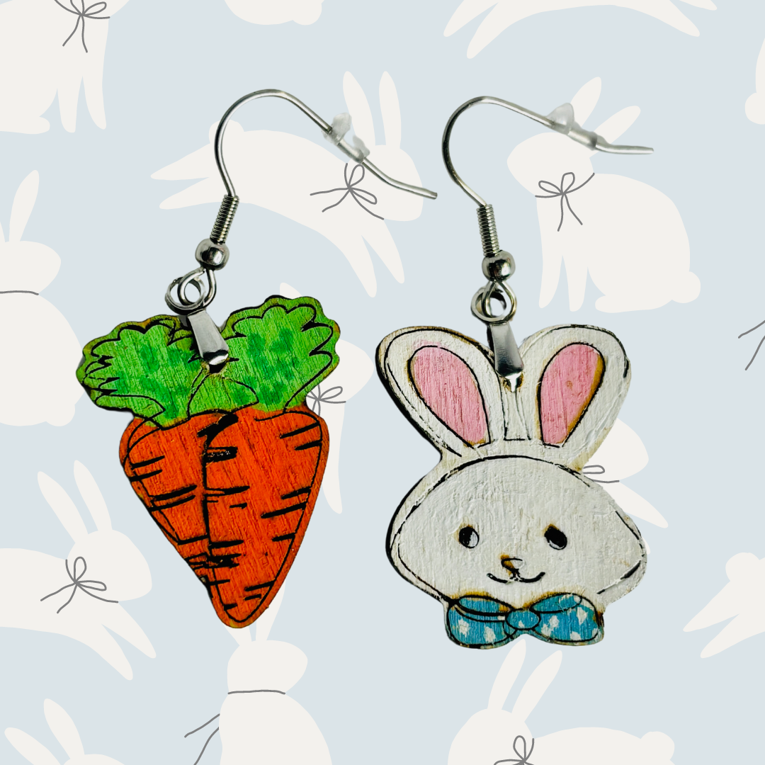 Easter Dangles - Carrot and Bunny Wooden Earrings
