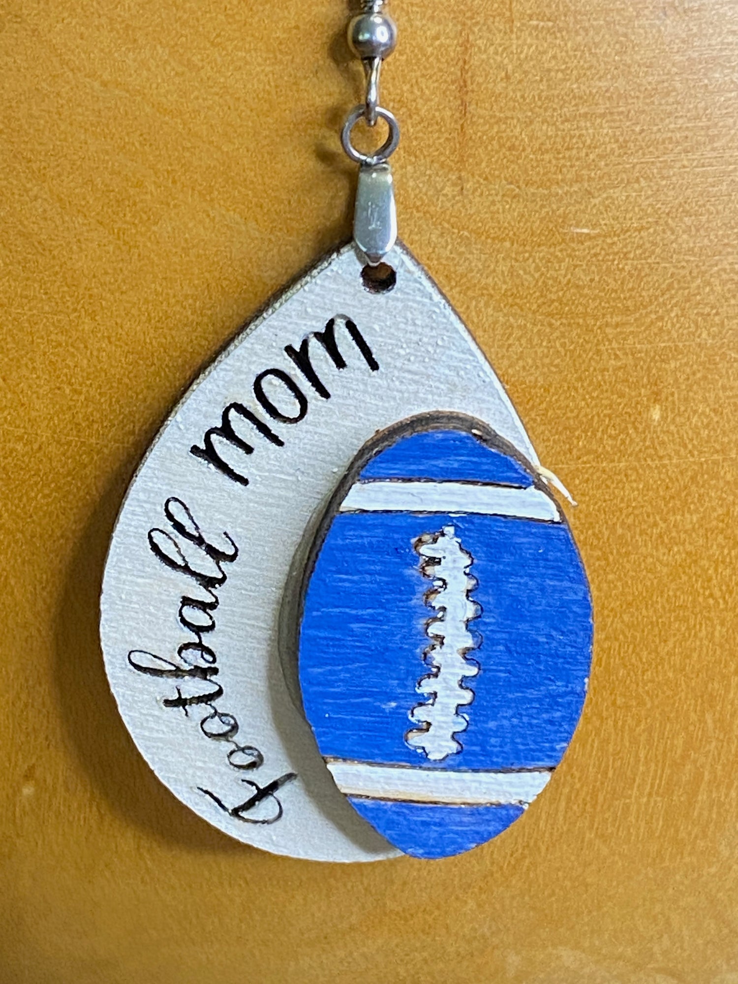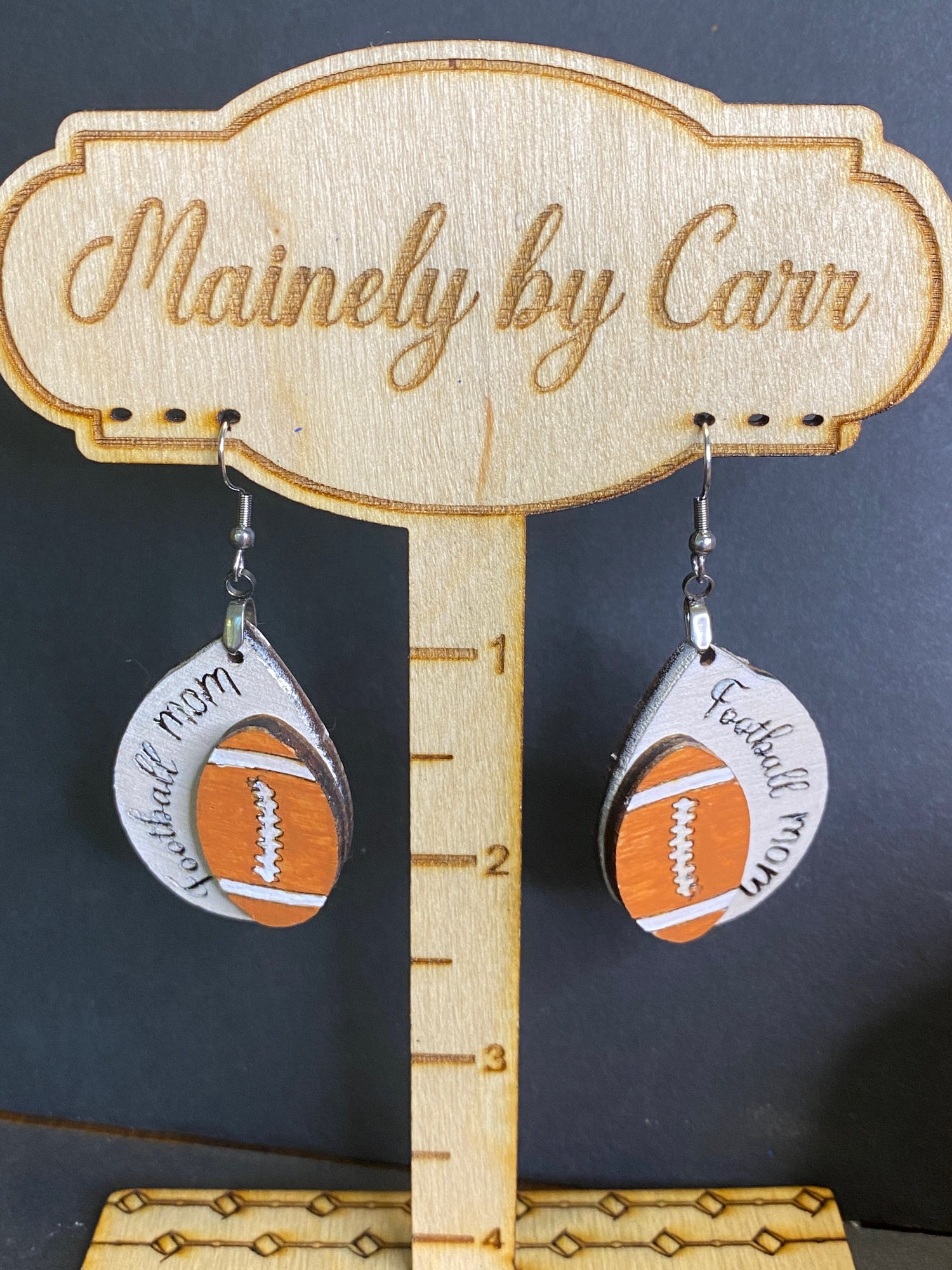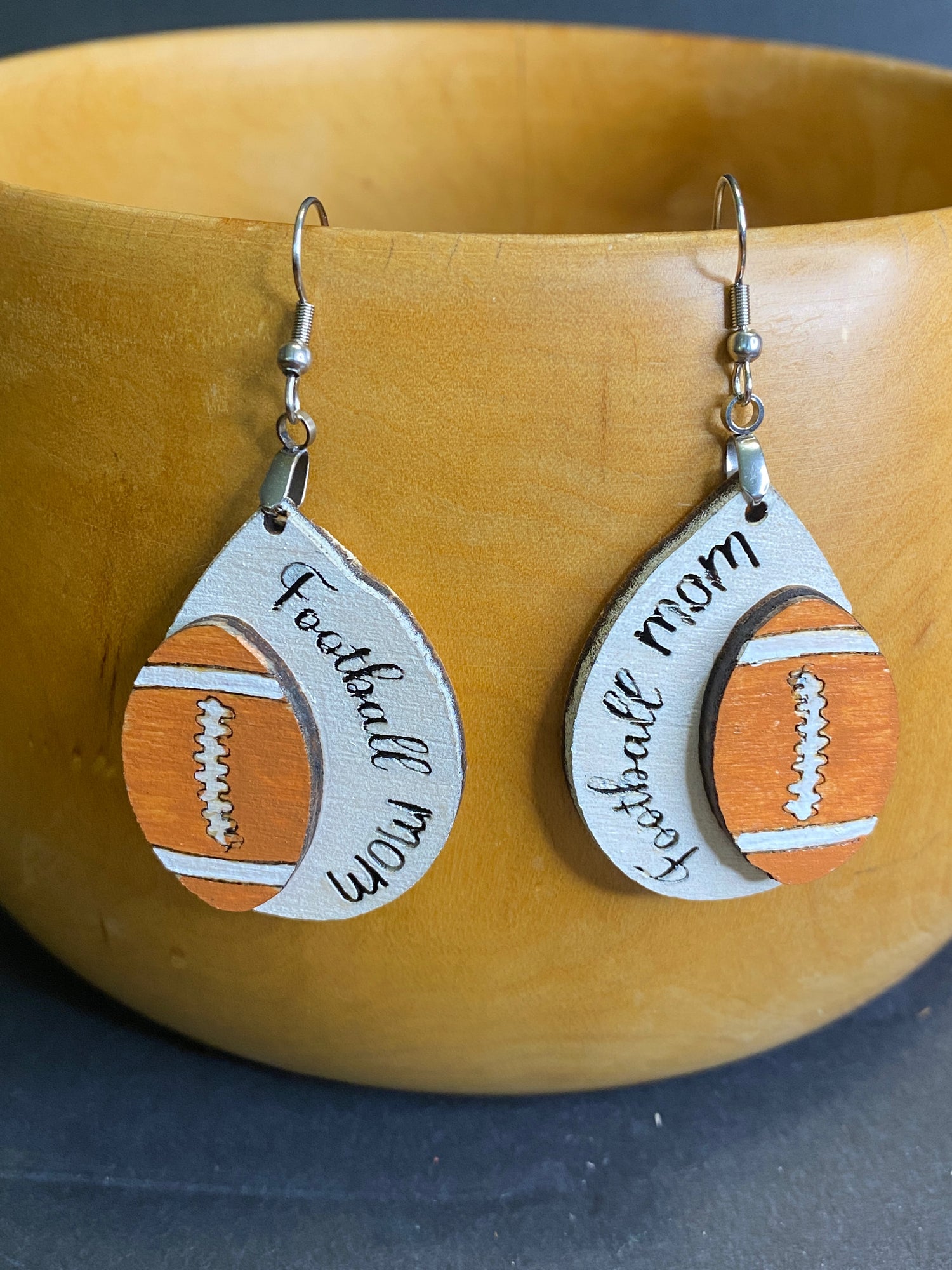 Football Mom - Hand Painted Wooden Earrings with 3D Football - School Color Football available