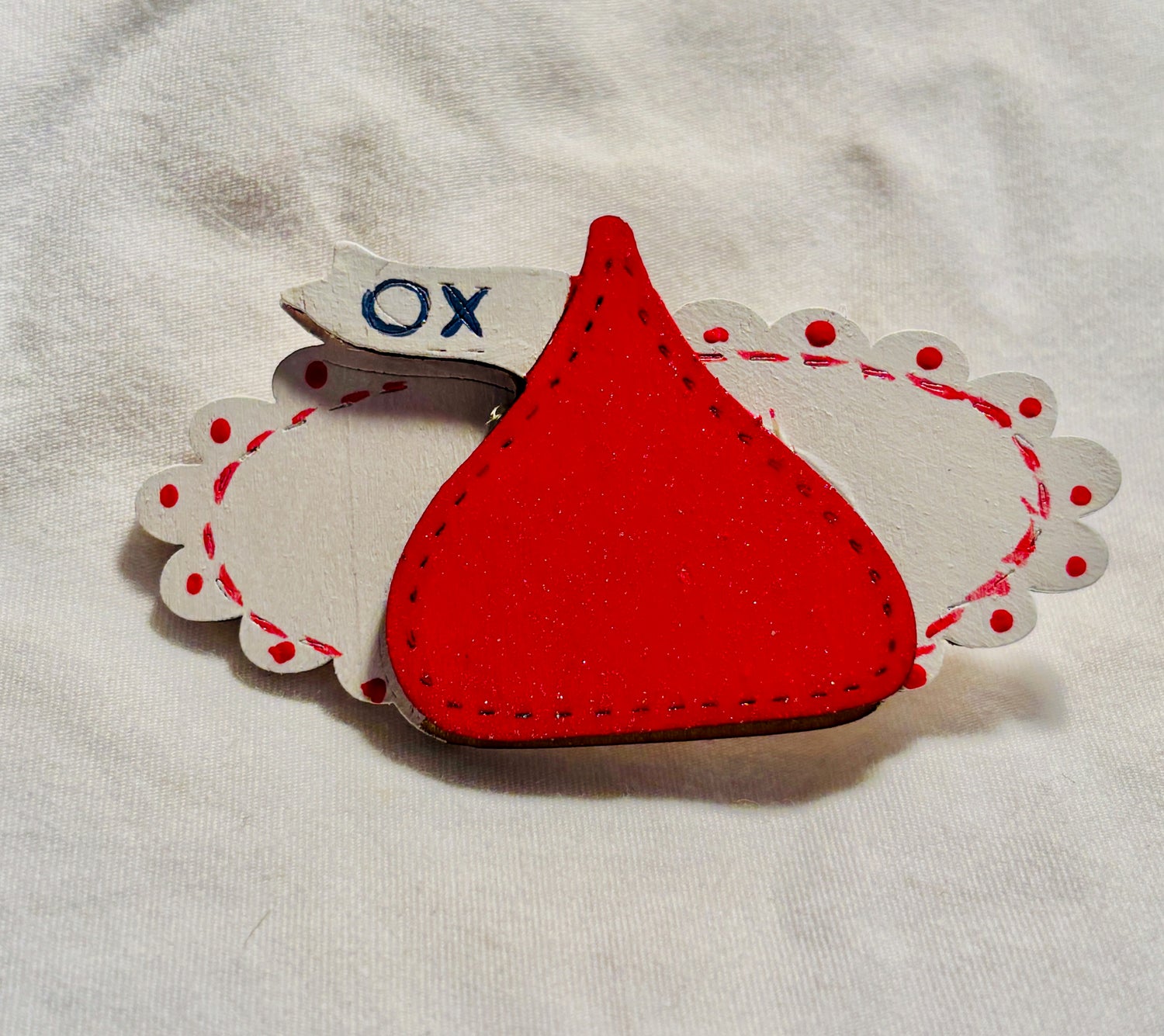 Make a statement with our Give me a Kiss barrette! Featuring a big kiss design, this 2.5 inch barrette is a playful addition to any hairstyle. Hand painted on a wooden top, it's a fun and unique way to add some flair.
