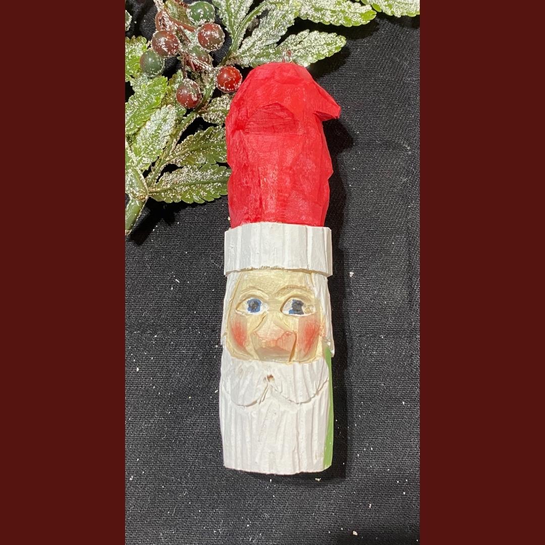 Hand Carved Santa Claus with red Tall Hat, Christmas Tree Ornament 4"