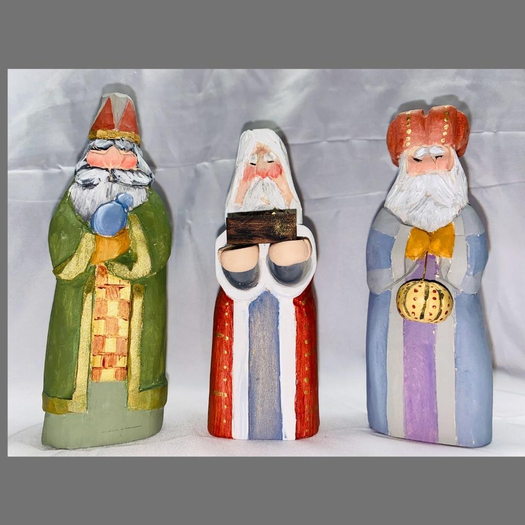 Hand Carved 3 Wisemen set of 3 Nativity pieces 6"