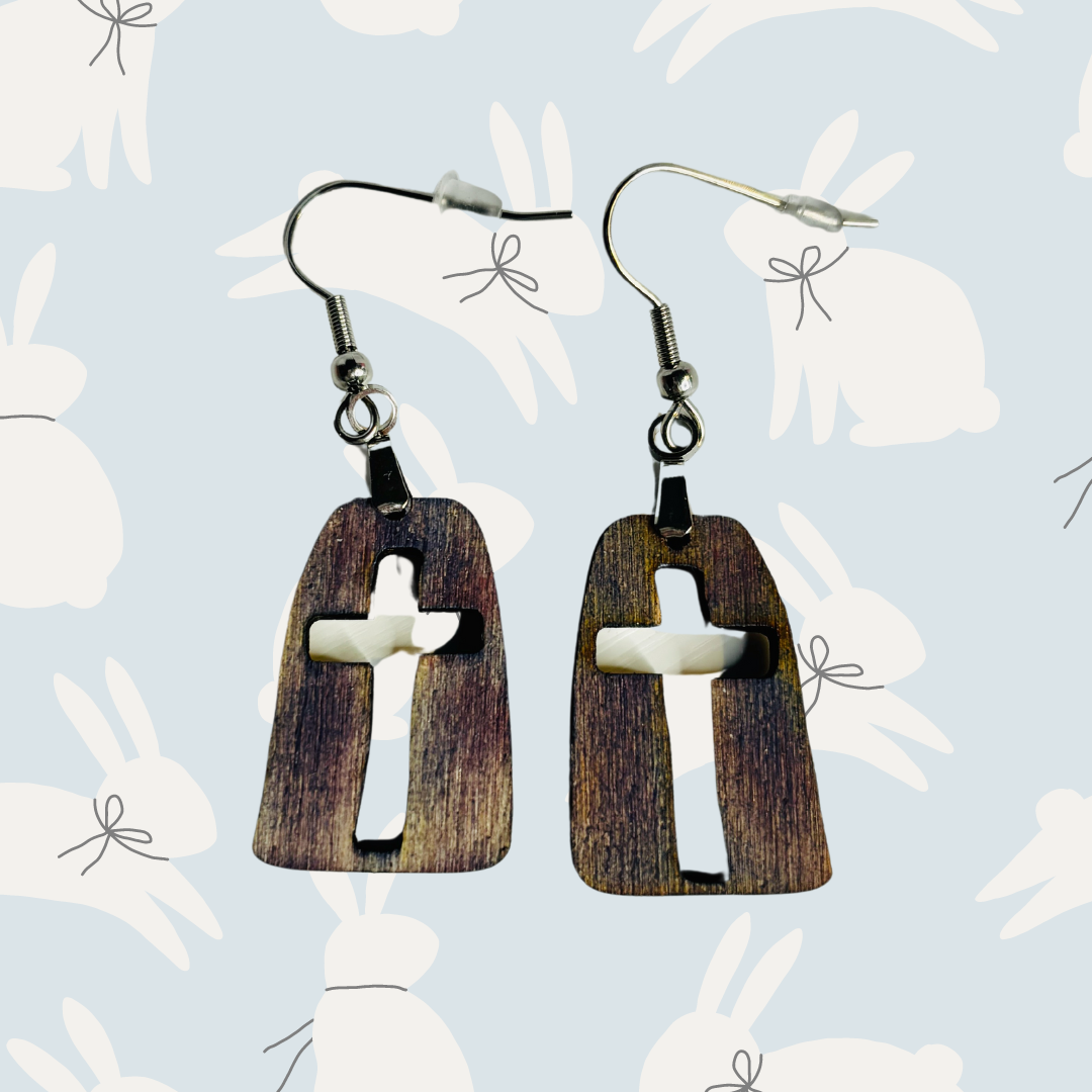 Add a pop of color to your look with these Hand painted Cross Dangle Earrings! Handcrafted with watercolors on premium baltic birch, each earring features a cut out cross design and hangs from hypoallergenic hardware. Perfect for those with sensitive ears.