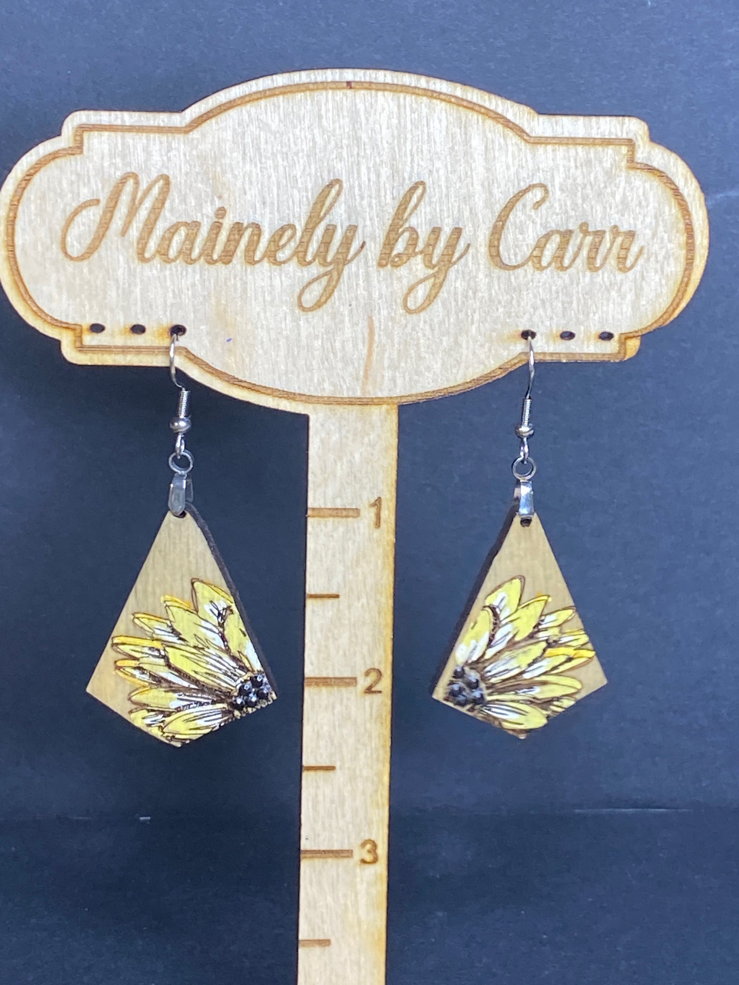 Charm and elegance combine in this exquisite hand-painted sunflower earring, featuring a gleaming diamond shape, a radiant black gems in the center, and hand-detailed accents that bring the flower to life. An exquisite piece, perfect for adding a touch of beauty and luxury to any wardrobe.