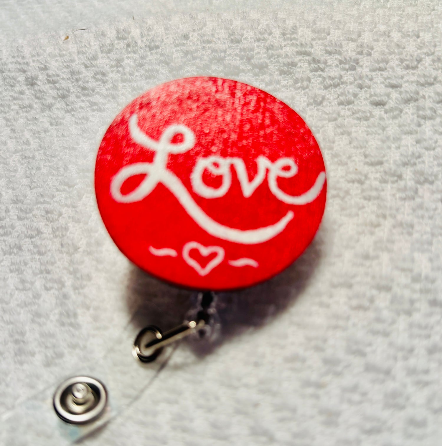 Show some love with this retractable badge reel in a vibrant red hue. Keep your ID or keys handy with a touch of whimsy and style. No more boring badge holders! Made from premium baltic birch and hand painted.