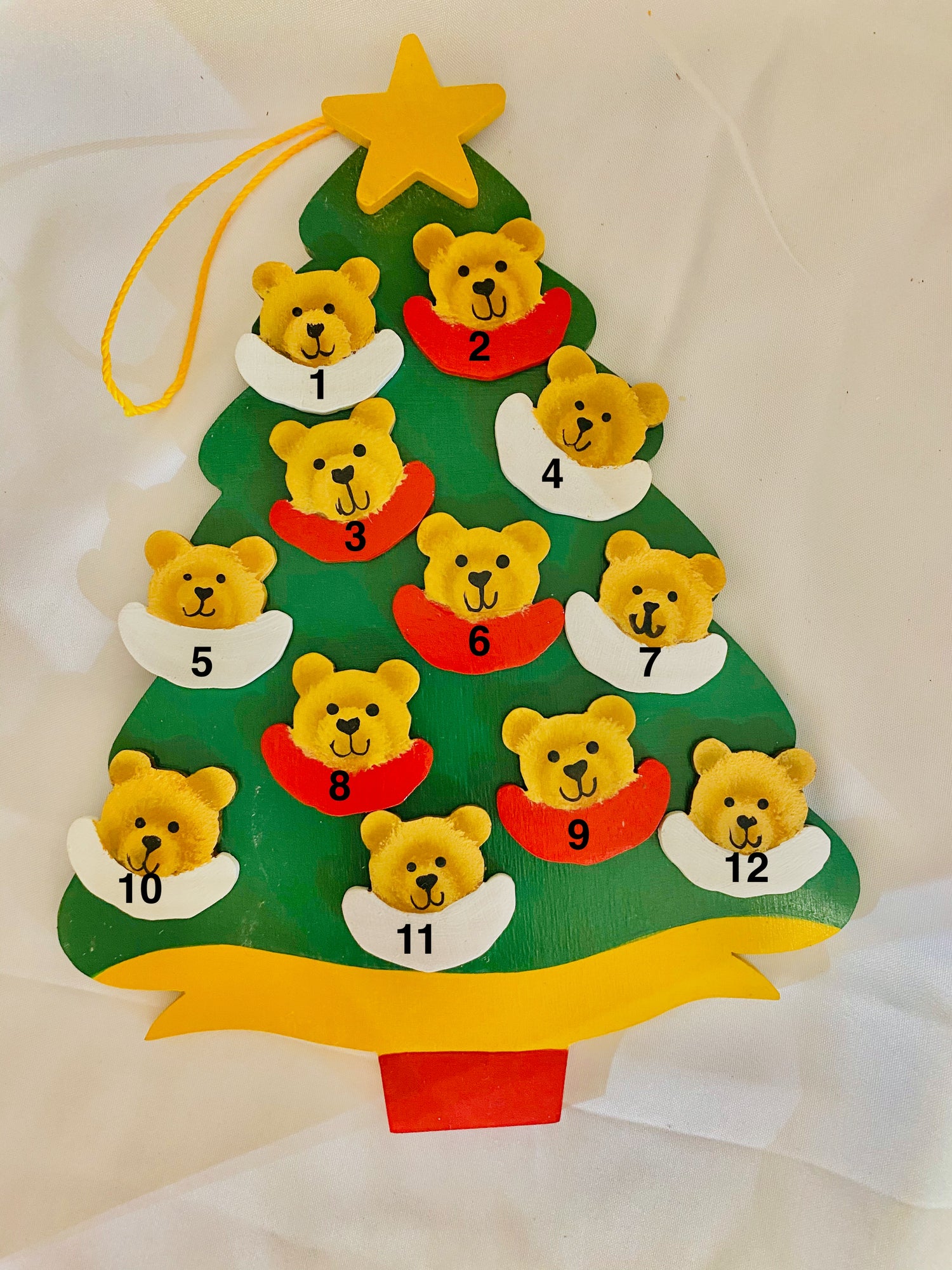 Personalized Ornament 12 Bear Faces on a Christmas Tree 8.5" x 7"