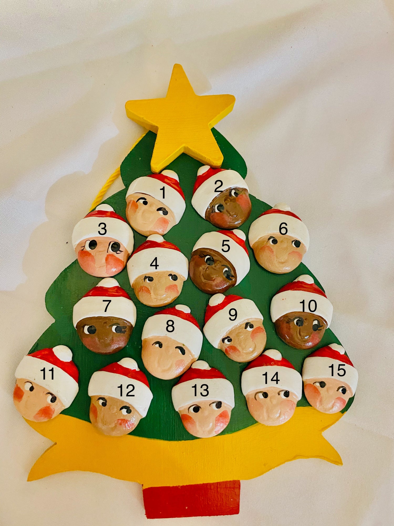 Personalized Ornament 15 Santa Faces on a Christmas Tree 6" x 4.5"
