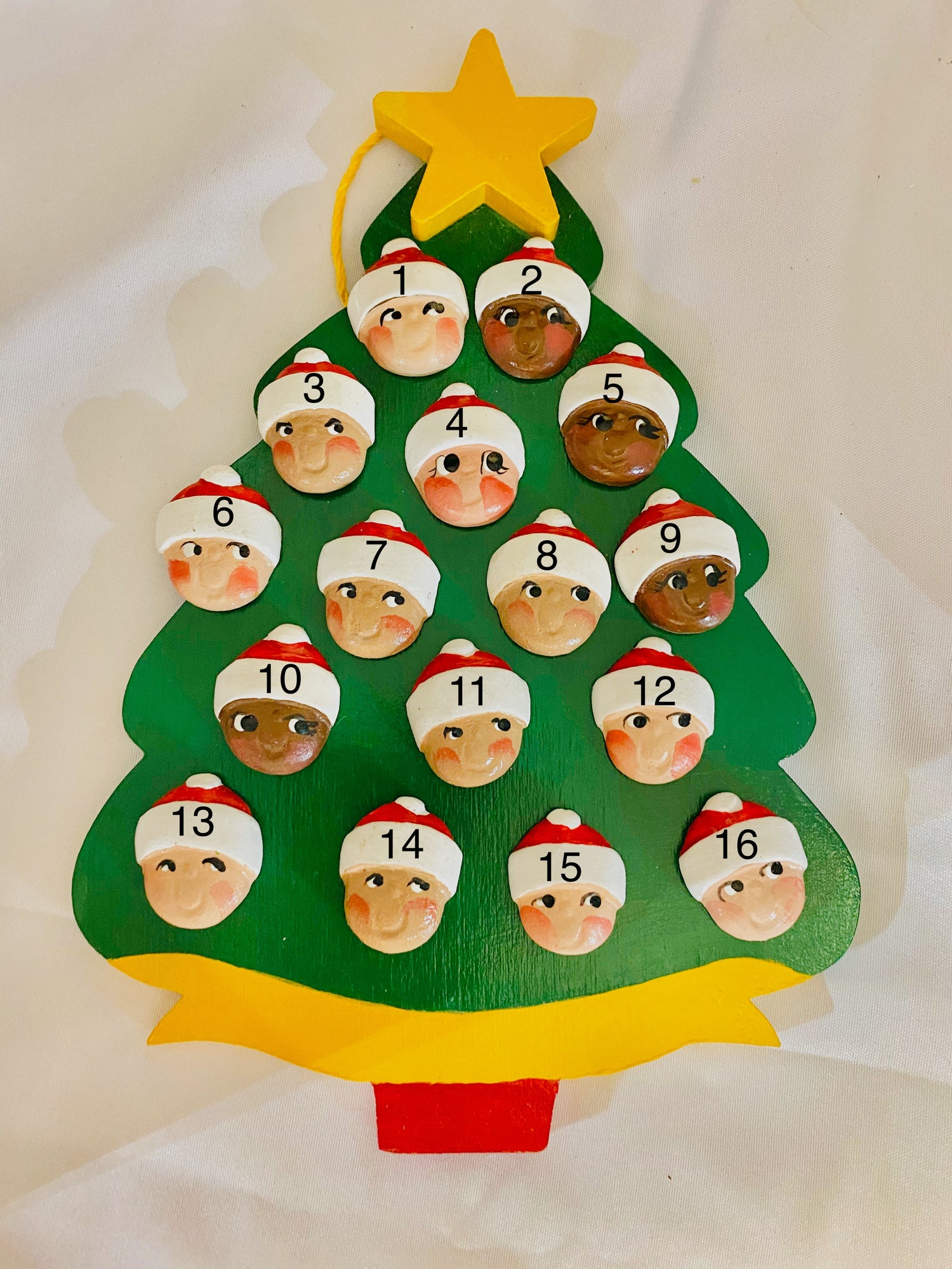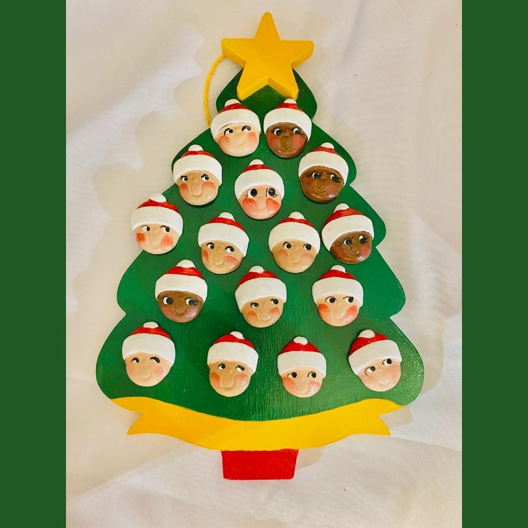 Personalized Ornament 16 Santa Faces on a Christmas Tree 7.5" x 6"