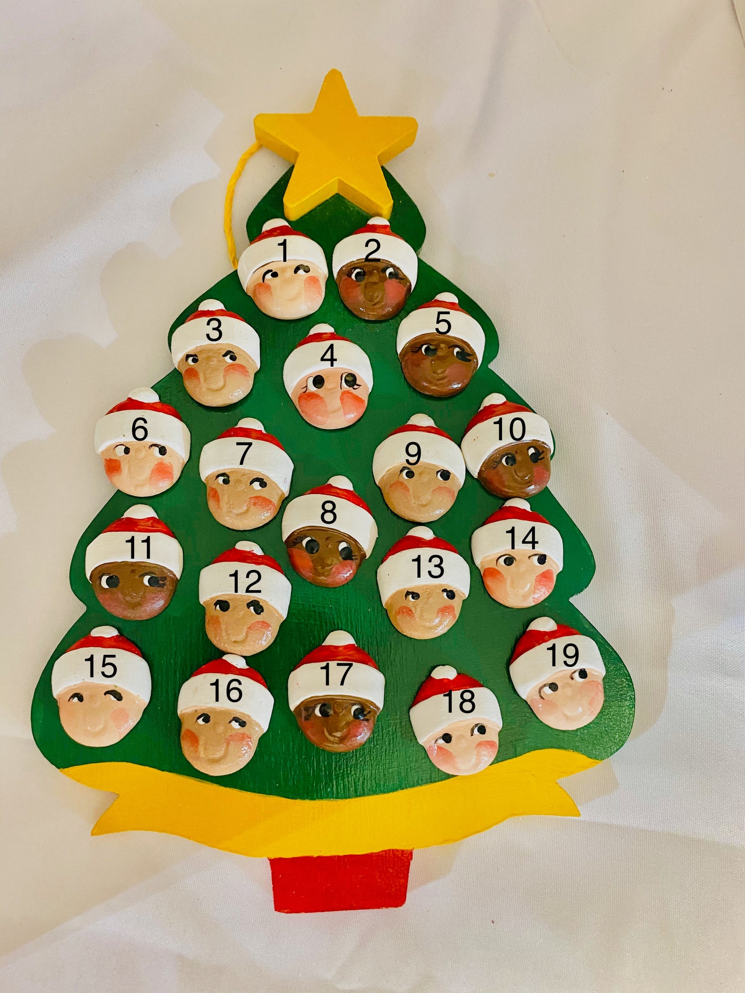 Personalized Ornament 19 Santa Faces on a Christmas Tree 7.5" x 6""