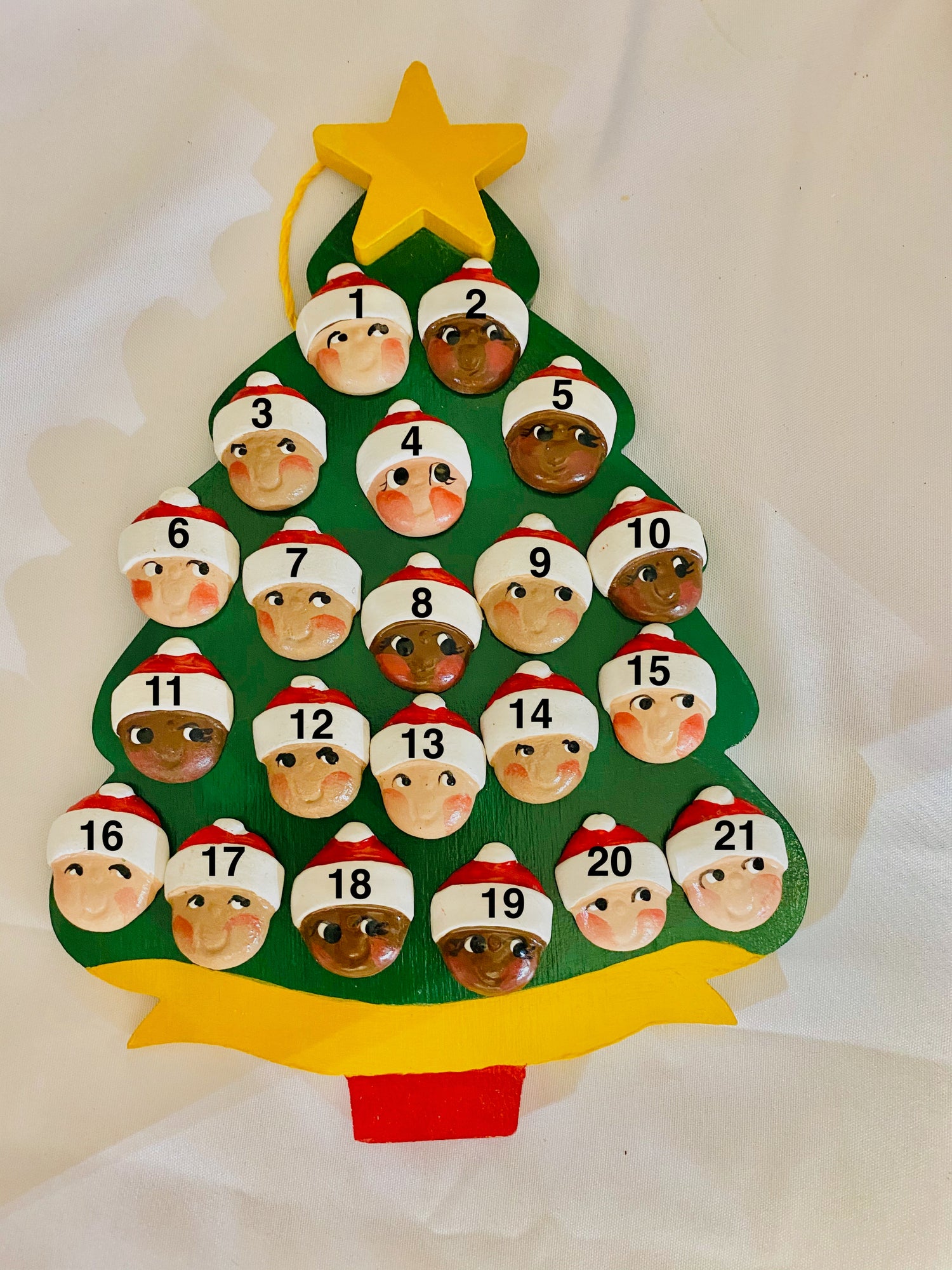 Personalized Ornament 21 Santa Faces on a Christmas Tree 7.5"x 6"