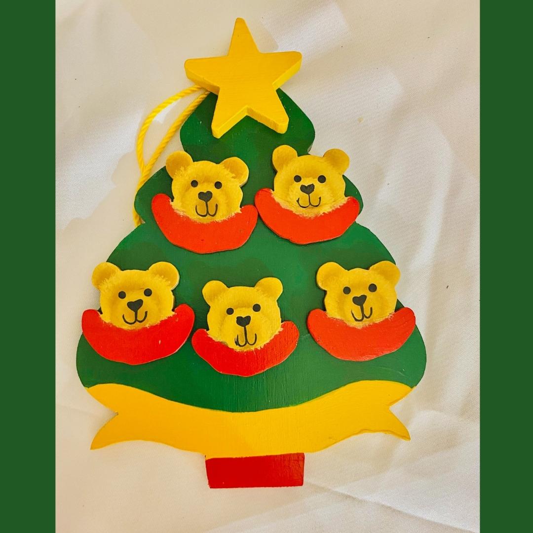 Personalized Ornament 5 Bear Faces on a Christmas Tree 6" x 4.5"