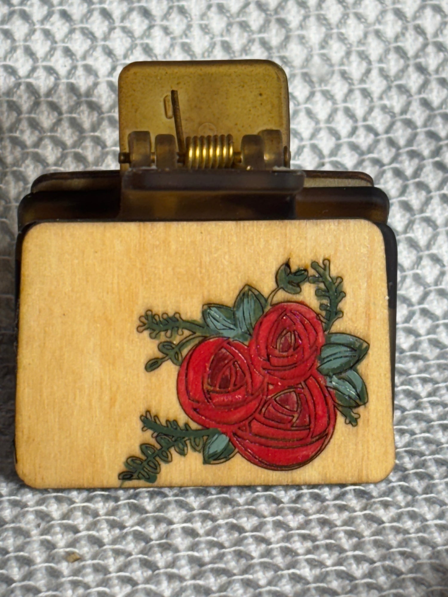 Add a touch of whimsy to your hair with our Red Rose Trio 2" Hair Clip. Each clip features a beautifully stained background and hand painted red roses, making it a unique and playful addition to your accessories. Perfect for everyday wear or special occasions!