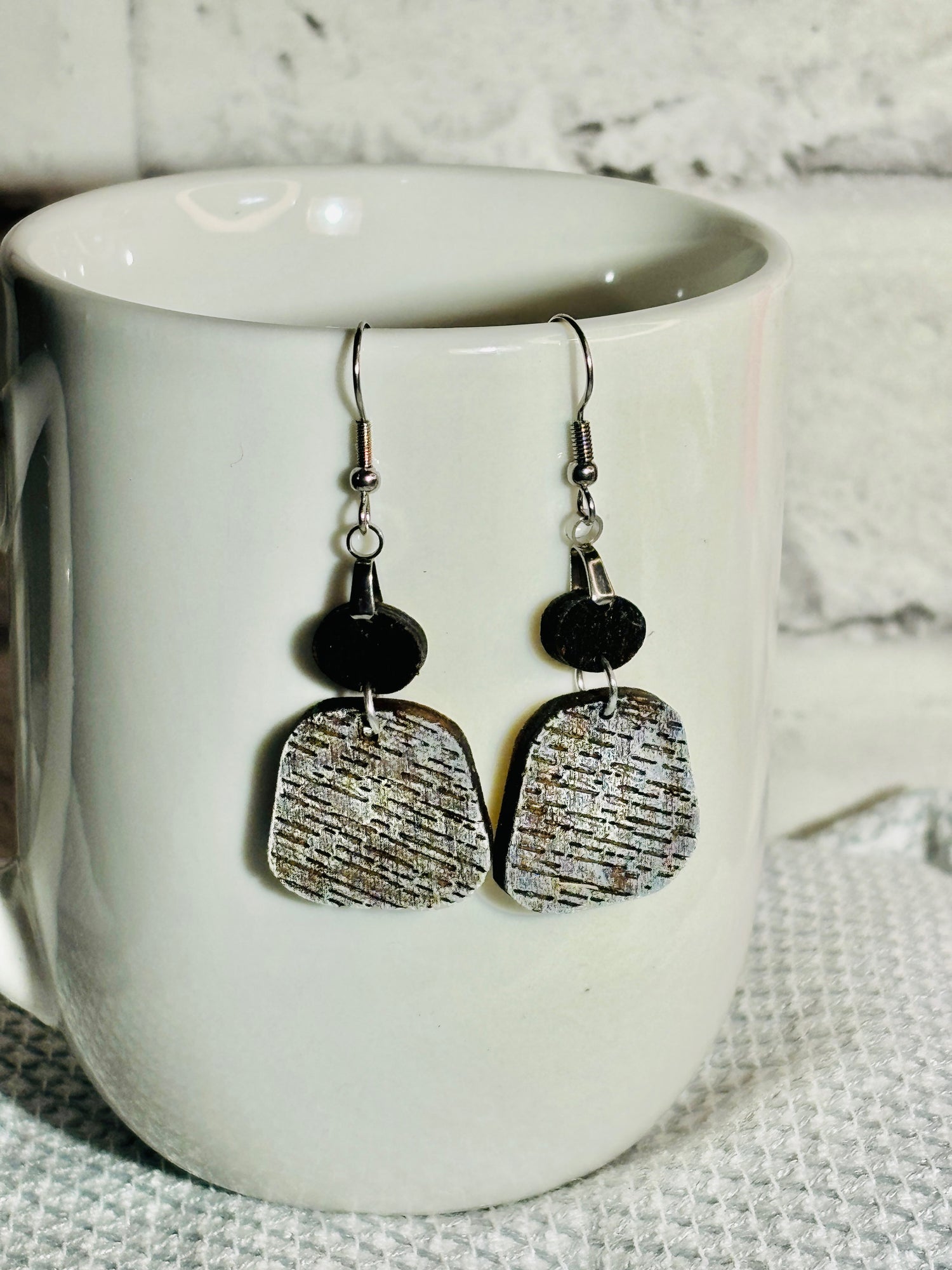 "Complete your boho look with these handmade Rounded Square earrings. The brown background and white dry brush add a unique touch, while the hypoallergenic and lightweight design make them comfortable to wear. Crafted from premium Baltic birch, these earrings are both stylish and rustic."