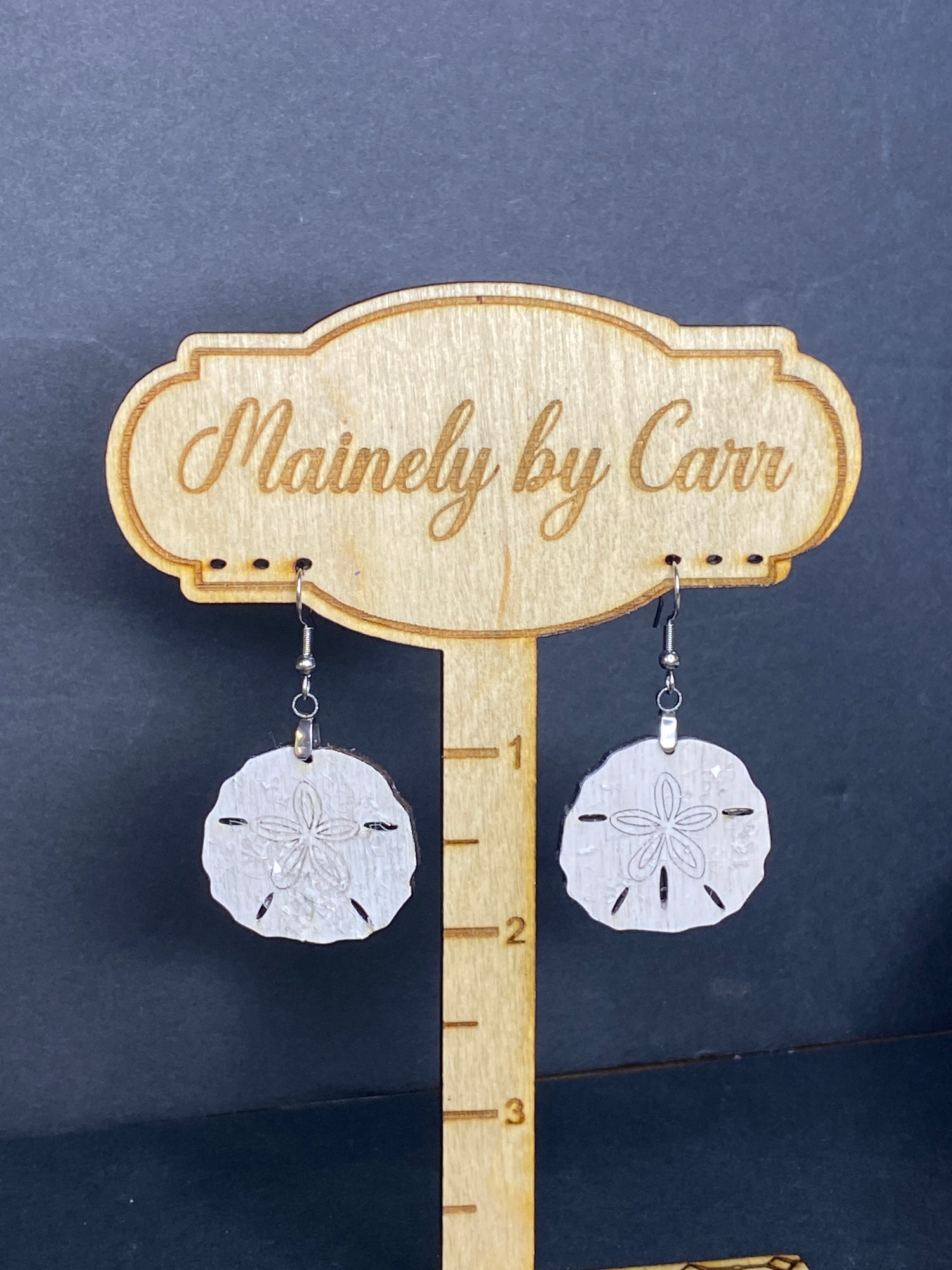 Our Sand Dollar Earring with Diamond Dust will add a luxurious, elegant touch to any ensemble. Crafted from wooden earrings with a sand dollar centerpiece, these beauties are sprinkled with diamond dust for a touch of brilliance. The perfect accessory for a night out or formal occasion.