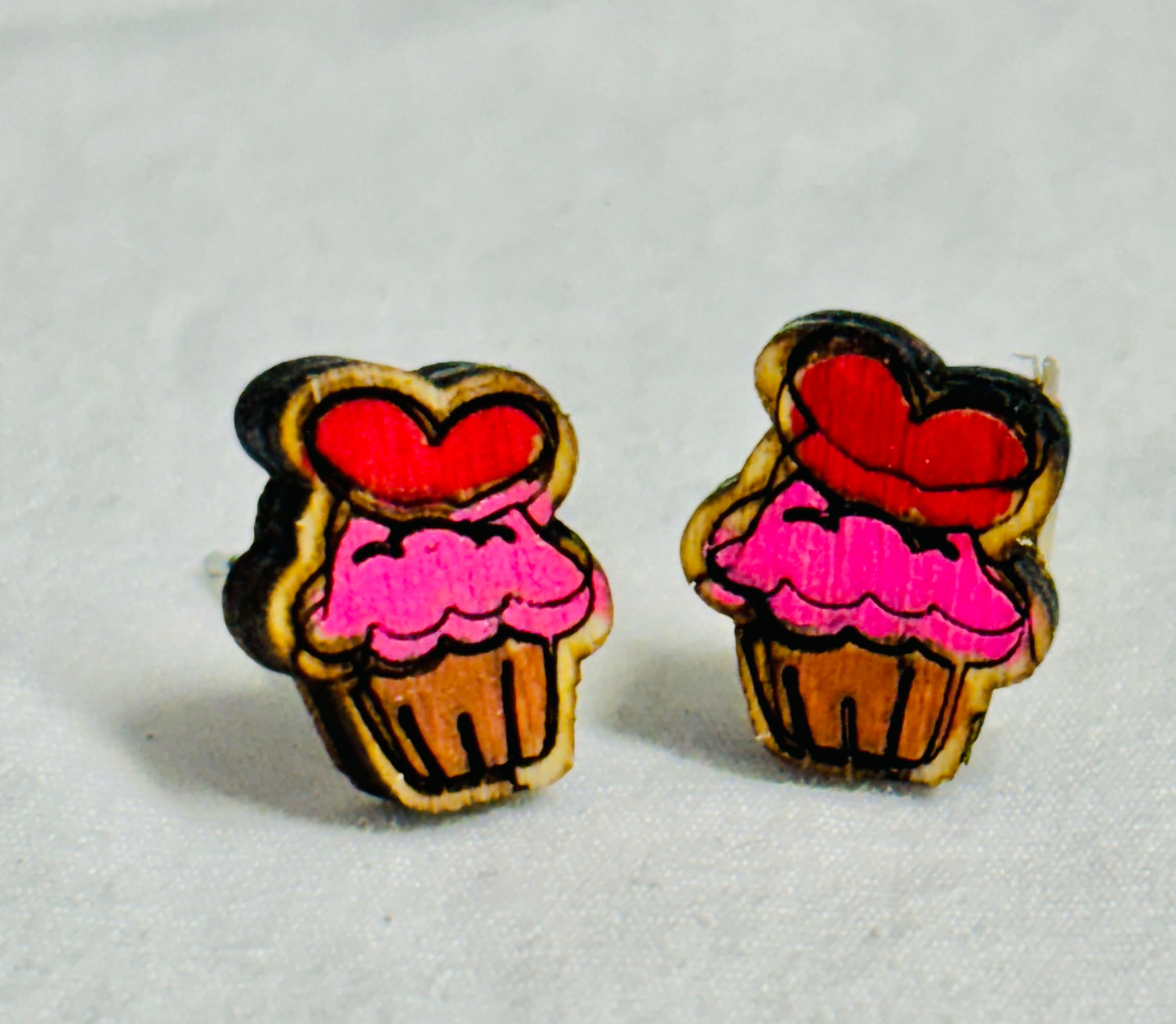 "Add a sweet touch to your outfit with our hypoallergenic Valentine Cupcake earrings. These nickel-free stud earrings come in bright colors, perfect for celebrating love and sweets. (Because who needs a sugar rush when you can have these earrings!)"